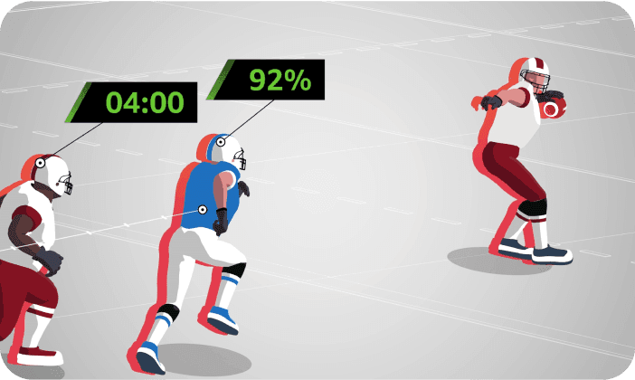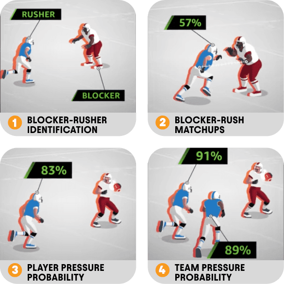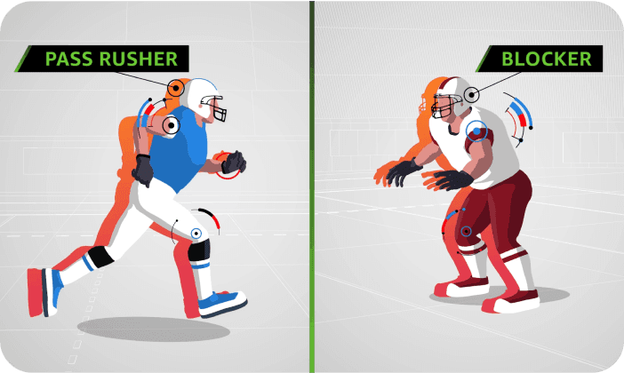Usando dados de sensores de todo o jogo, a equipe da AWS primeiro precisou identificar atacantes defensivos, bloqueadores ofensivos e como eles se enfrentariam.